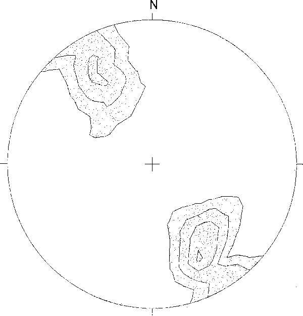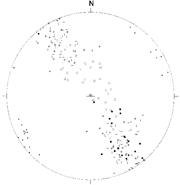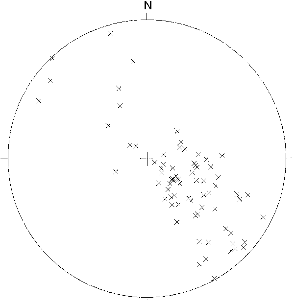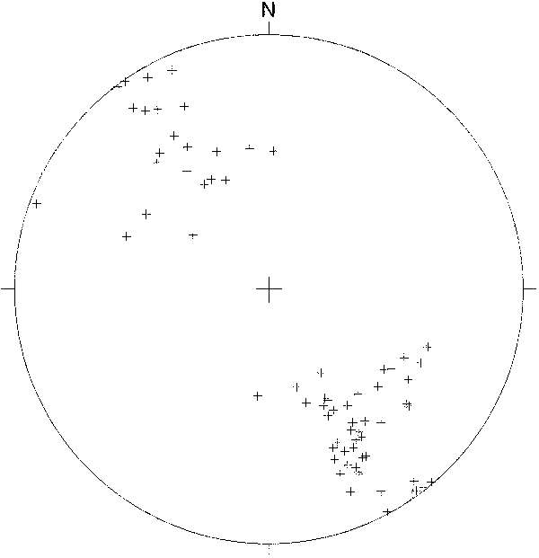 Die Untersuchungen im Zuge dieser Diplomarbeit ergaben, daß die Knickbänder bevorzugt in Bereichen südvergenter Schieferung entstanden. Im Süden und südlich des Kartiergebiets weist die Schieferung häufiger Südvergenz auf, weshalb dort fast ausschließlich nach S bis SE abschiebende Knickbänder einzumessen waren. Unterschiede zwischen Messungen im Westen und Osten des Gebiets wurden nicht festgestellt.