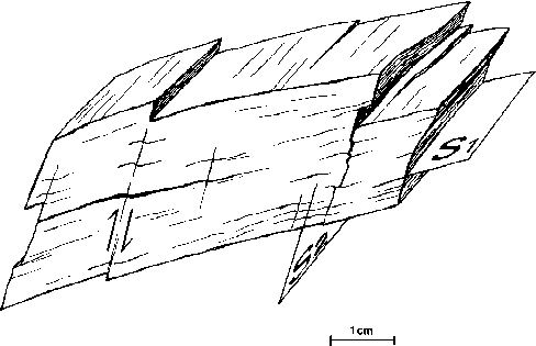 Möglicherweise durch Rotation, als Teil konjungierter Knickbänder oder innerhalb größerer übergeordneter Knickbänder erscheinen einige der Knickbänder aufschiebend.